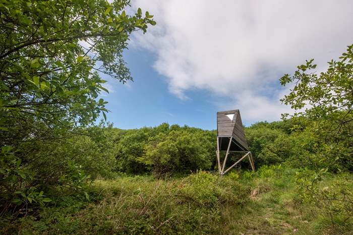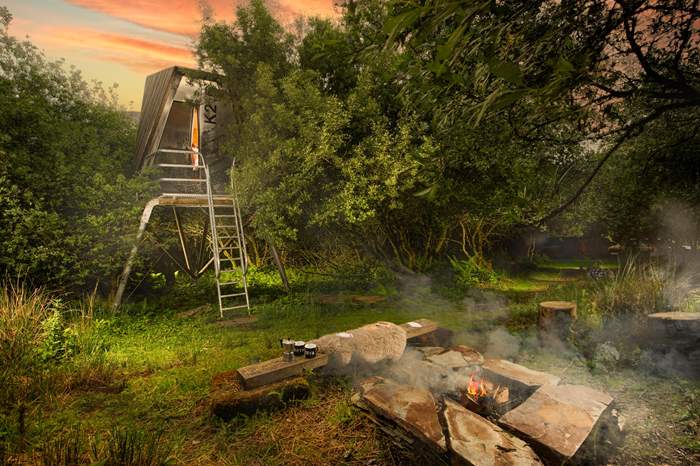 Inspired by the historic mining engine house within the grounds, bring a few of your friends along for the ultimate back-to-nature adventure. Step inside to find the wonderfully rustic open-plan living area, complete with a breakfast bar island with a Yeti cooler and a camping Gaz stove for simple holiday meals. The cabin's sides open up, ideal for letting the fresh Cornish air flow through on those warm summertime days! Within the cabin, there's also a swinging egg chair, two sofas and a bookshelf for those sweet do-nothing afternoons. Later on, the sofas can be pushed together to create a cosy double bed, or they can be left as two single beds, your choice! Head up the ladder to the mezzanine floor, where you will find two sets of bunk beds. The cabin's lights and plug sockets are solar-powered so you may experience a limited supply during your stay, and there's a private compost loo just a few steps away from the cabin.