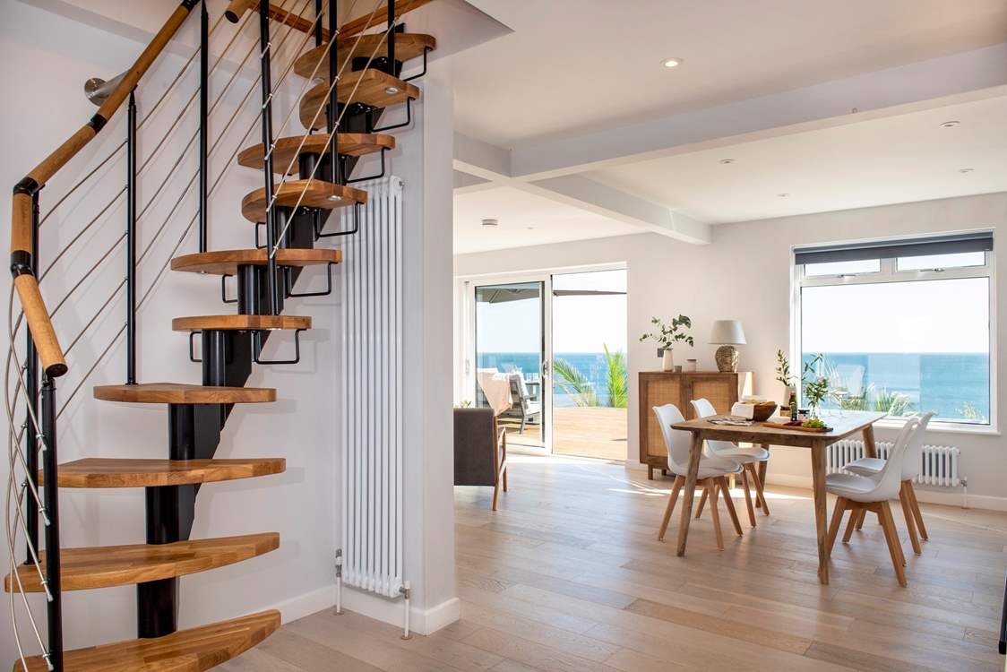 The beach in the village is just down the hill , you have a bird's eye view from the decking.
