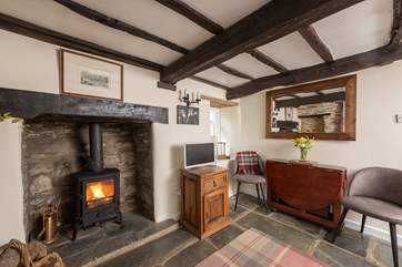 The cottage is really cosy, with a multi-burner in the huge inglenook fireplace at its heart and a cheerful galley-style kitchen leading to a very private enclosed patio at the rear. The spacious double bedroom and the shower-room look out over an oasis of hidden gardens.