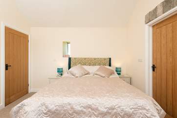 There are two very comfortable bedrooms off a wide corridor, one with a king-size double bed and large walk-in en suite shower, the other with the flexibility of 'zip and link' twin beds, or a king-size bed. The family bathroom has a wonderful deep bath and a hand held shower attachment.