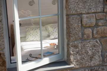 Brimming with character and style this gorgeous open plan retreat has everything you need for a relaxing stay, with a roaring wood-burning stove to make things super-cosy on those chillier evenings, and a comfy double bed at the far end of the room. You will also find a delightful little dining-area and kitchenette for those who want to cook up a breakfast or a light supper. In the daytime you can sit and dream at the table gazing out the window as you linger over your morning cuppa. A single step takes you into the deceptively spacious shower-room, complete with a large shower cubicle, a must for washing sandy toes and salty hair. Outside the cottage has a glorious south-facing decked area with a table and two chairs perfect for a spot of al fresco dining.
