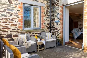 The open plan living and dining area has a well-equipped kitchen and is a wonderful space to spend quality time together. With two comfortable double sofas perfect for snuggling up on, the downstairs area is an inviting room which flows out to the garden and private seating area.