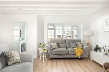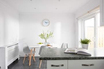 Step inside to discover a very sweet, beautifully renovated getaway; a truly wonderful place to stay any time of the year. The stylish sitting-room is a great spot to sit back and unwind after a day of Cornish adventures, with a fabulous wood-burner for those cosy evenings in. Wander through to the contemporary kitchen and dining space, which has everything you need for creating delicious holiday meals. Take a pew at the lovely dining-table to enjoy a morning coffee and a leisurely breakfast before your day begins.