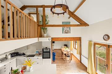 Step inside to discover the oh so lovely interiors - the open plan living space is a wonderful spot for sociable evenings gathered in the kitchen, enjoying holiday meals around the dining-table and relaxing on the sofas with a glass of your favourite tipple next to the wood-burner. On the ground floor you'll also find the first of three bedrooms, a very pretty double room with a fabulous en suite shower-room.