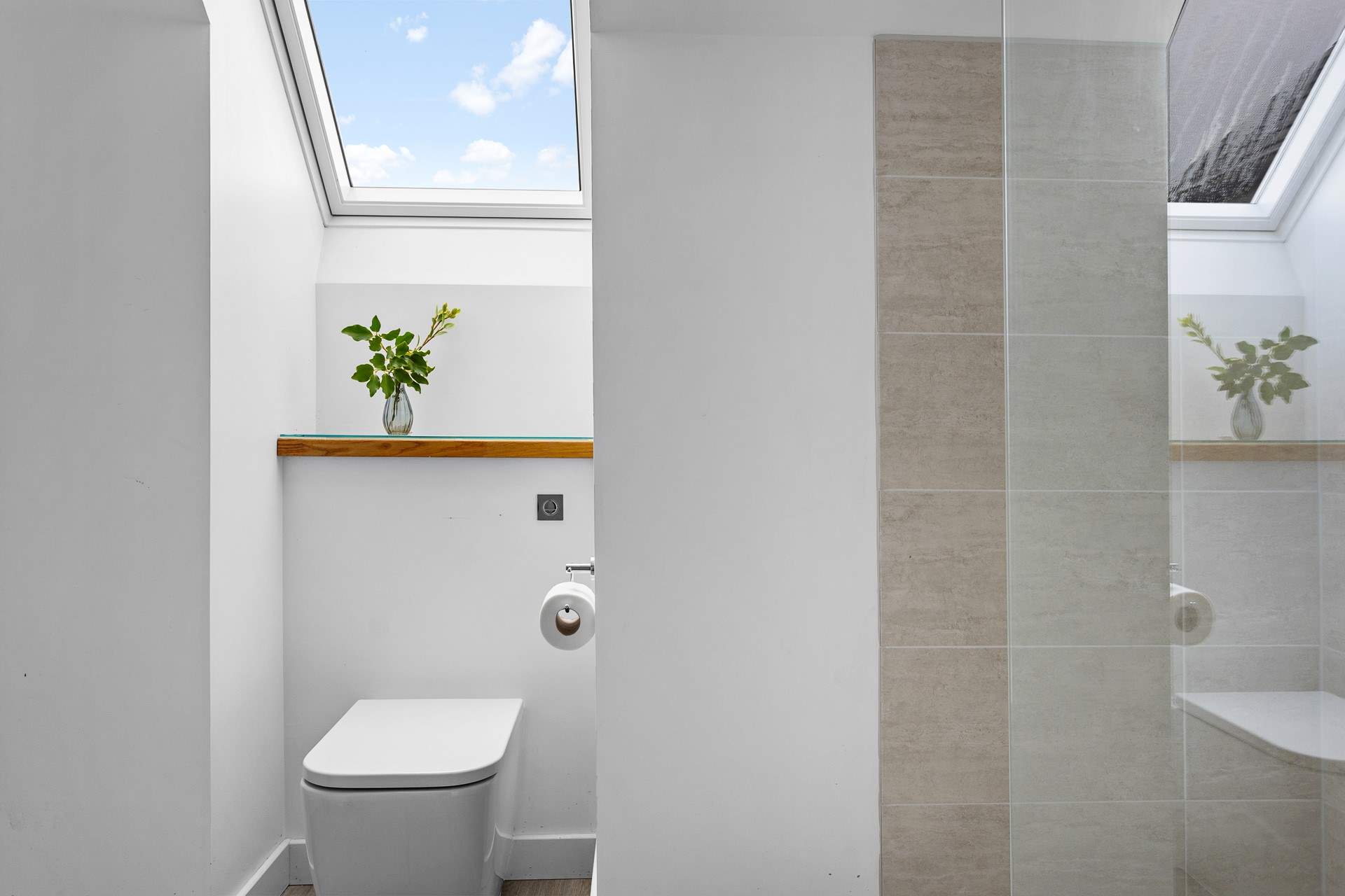 There are four bedrooms at Horizon, three of which can be found on the first floor. Two bedrooms face to the front, overlooking the garden, each furnished with a comfy king-sized bed, wardrobe, chest of drawers and en suite bathroom with overhead shower. They also enjoy bi-fold doors which open out on to the sun-soaked balcony, the perfect spot for morning coffee as you gaze over the countryside and out to sea. Down the hallway, the third bedroom has twin beds, a Smart TV, wardrobe, chest of drawers and an en suite shower-room that's ideal for children, while on the ground floor the fourth bedroom has wooden bunk-beds and a chest of drawers, with use of the wet-room down the hall with shower and WC - perfect for a quick shower after a morning run.
